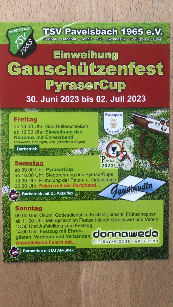 Gauschützenfest 2023 beim TSV Pavelsbach (30. Juni bis 02. Juli 2023)